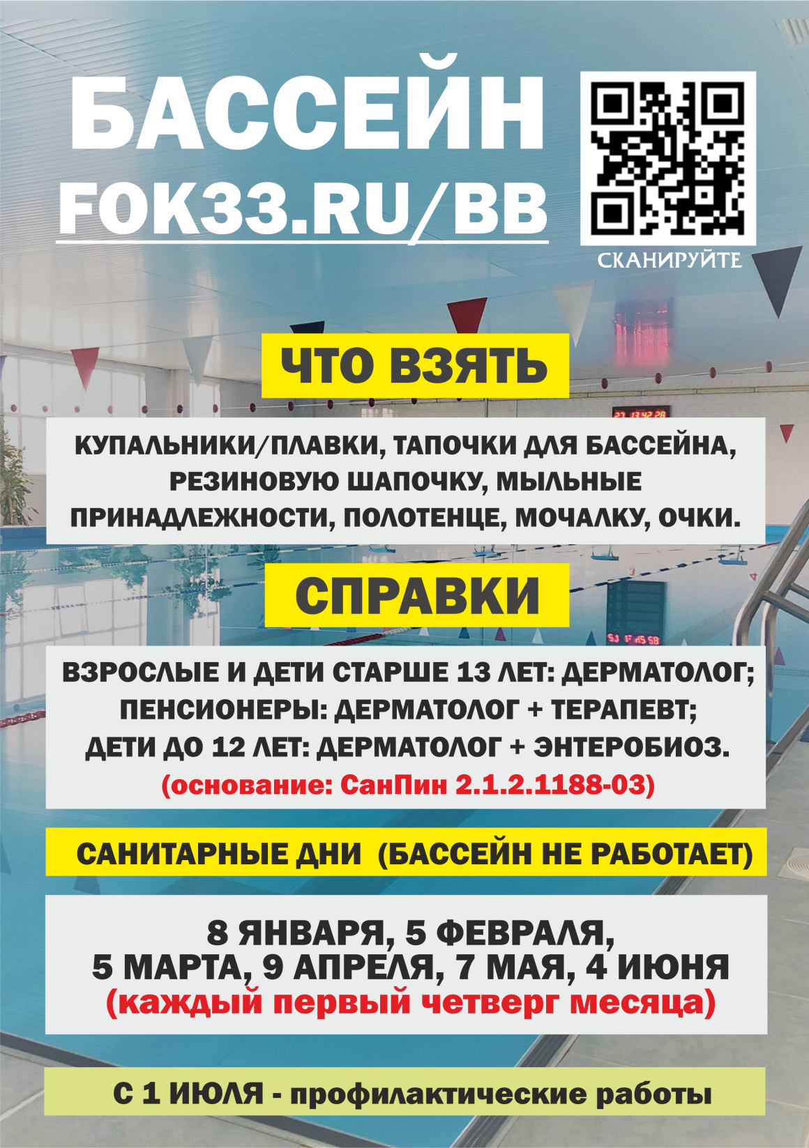 1.4. Администрация МБУ «ФОК «Олимп» спрашивает у посетителей до занятия в бассейне справки: у детей и взрослых – справку от дерматолога, у взрослых, достигших пенсионного возраста – справку от терапевта. Льготным посещением в установленное время пользуются посетители, зарегистрированные на территории Владимирской области.